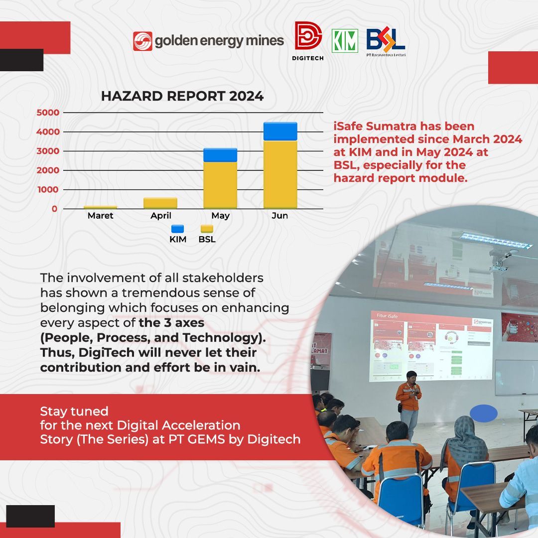 GEMS and DigiTech’s commitment to implementing collective progress across all business units can be seen in the iSafe Sumatra application. Berlian Hasbullah as Head of Upstream Business Advisory said, this application focuses on digitizing safety monitoring, operational efficiency, and compliance with regulatory standards, especially for site operational areas at KIM and BSL. The successful implementation of the iSafe application does not escape the involvement of all stakeholders. In the future, iSafe will continue to develop its features to make them more optimal. #TechConnect #GoldenEnergyMines #GEMS #iSafe #SafetyMonitoringApplication