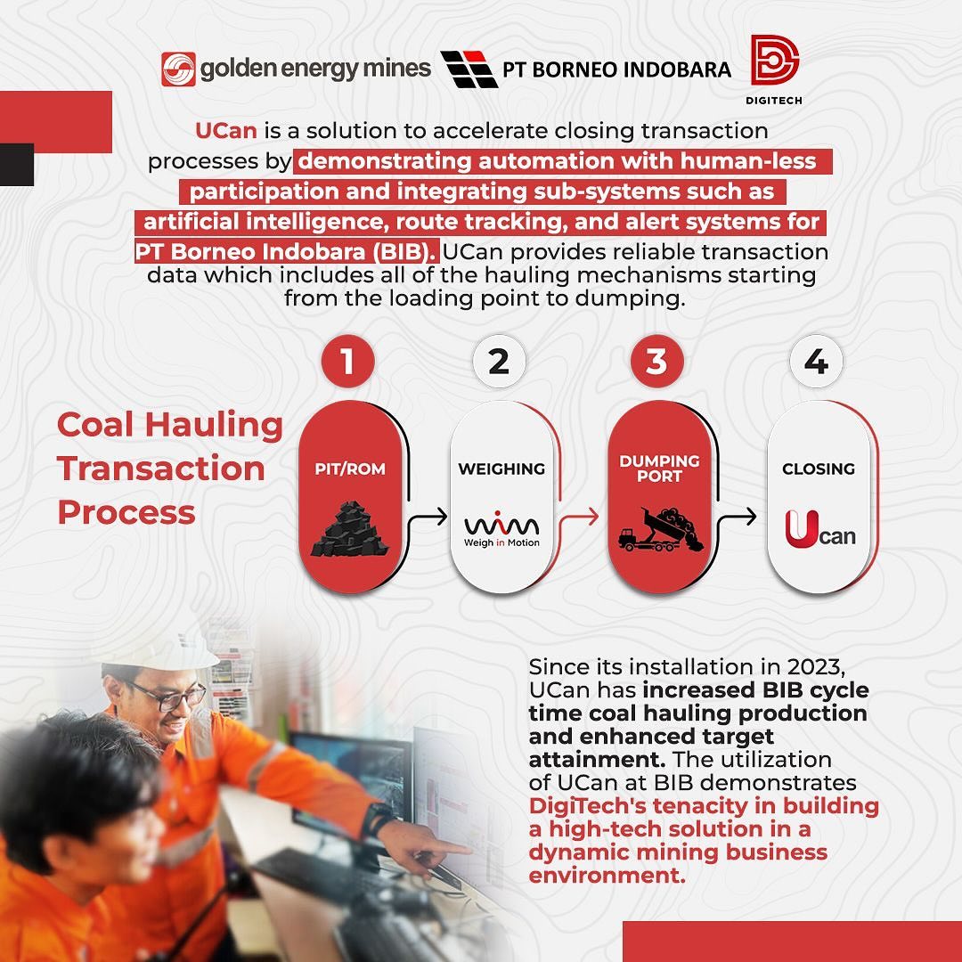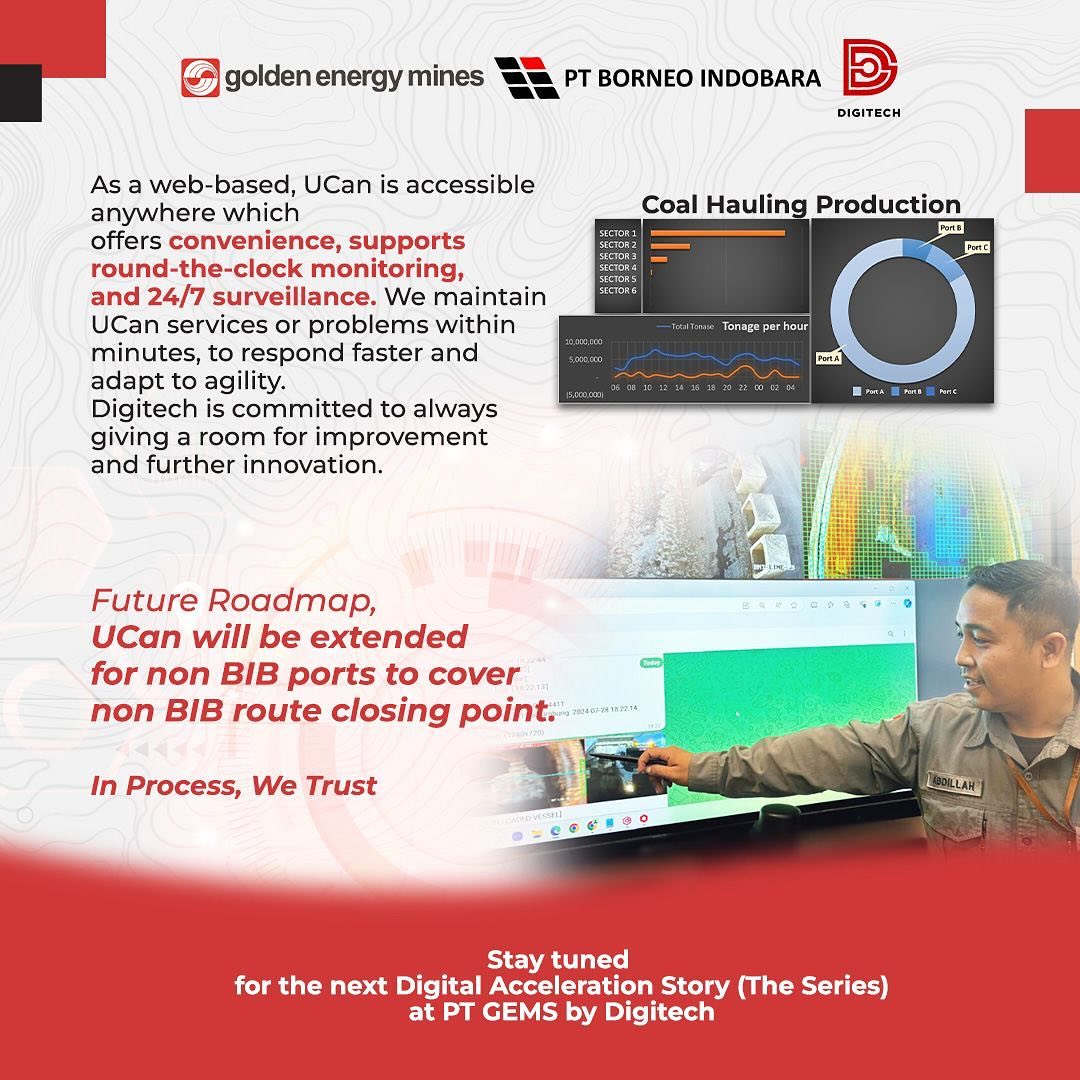 Regarding PT. Borneo Indobara (BIB) growing production, and improvements are necessary to shorten the current cycle time for loading, weighing, dumping, and closing. UCan has been present since 2023 to realize these improvements. Harris as a Site Reliability Engineer explained UCan leveraging automation to enhance efficiency. As a part of DigiTech’s commitment to respond faster and adaptively to agility, we maintain UCan services and problems within minutes. What do you think other breakthroughs will DigiTech present for the company’s improvement to continue to be even better in the future? Comment your thoughts below. #TechConnect #GoldenEnergyMines #GEMS #BorneoIndobara #BIB #DigiTech #UCan